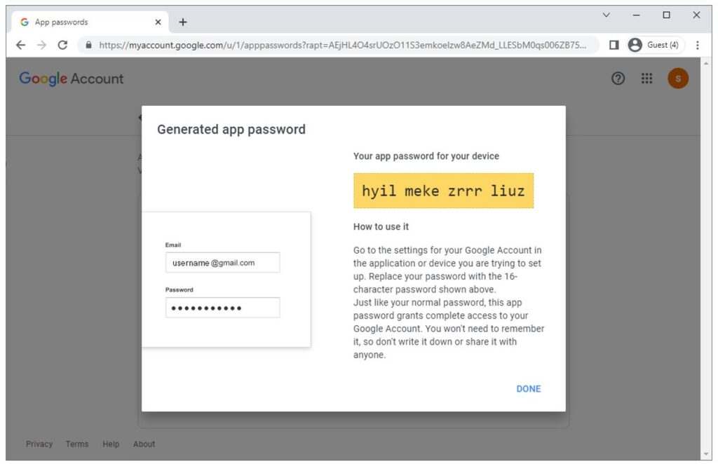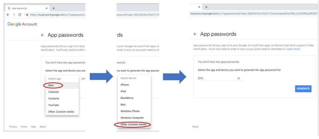 7) Use the generated 16-character password when configuring your Gmail account on the DVL